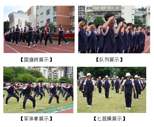 隨后,在高天宇上尉的指揮下進(jìn)行了軍訓(xùn)成果匯報(bào)表演。國(guó)旗班步伐整齊地護(hù)送著鮮艷的五星紅旗入場(chǎng),全體學(xué)生面向國(guó)旗敬禮,全體師生莊嚴(yán)肅立,齊唱國(guó)歌,激昂的歌聲在校園上空久久回蕩。接著,隊(duì)列展示方陣依次進(jìn)行分列式表演,同學(xué)們身姿挺拔、眼神堅(jiān)定,他們整齊劃一的動(dòng)作、飽滿(mǎn)的精神狀態(tài)贏得了現(xiàn)場(chǎng)領(lǐng)導(dǎo)和師生們的陣陣掌聲。軍體拳和匕首操表演再次震撼登場(chǎng),同學(xué)們將多日訓(xùn)練的成果完美呈現(xiàn),剛猛的動(dòng)作、響亮的口號(hào),仿佛要將這股青春的力量傳遞到校園的每一個(gè)角落。